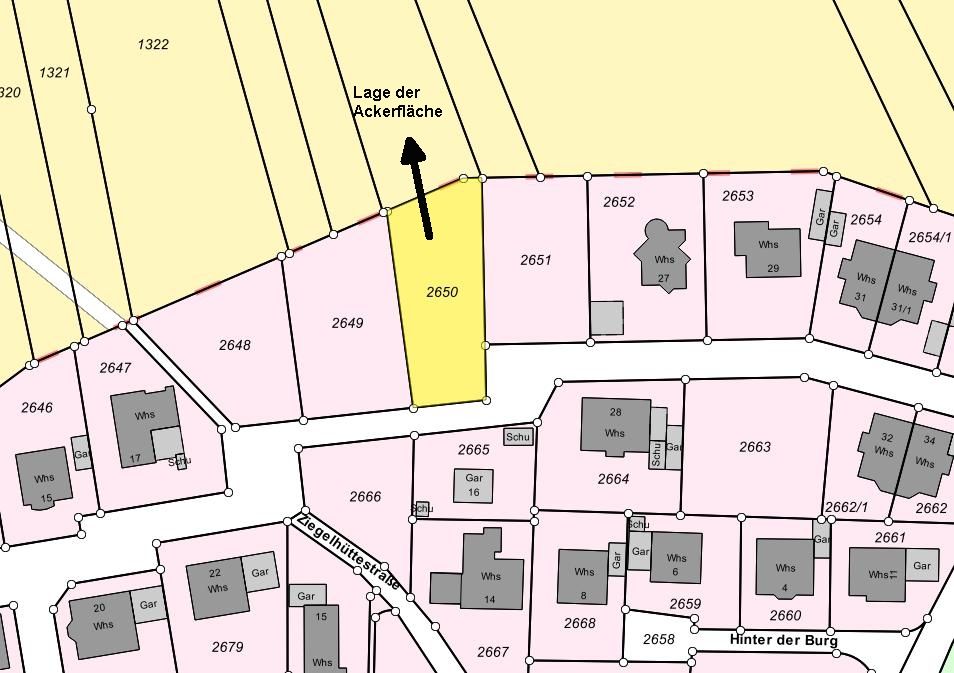 595 qm Baugrundstück + angrenzende Ackerfläche