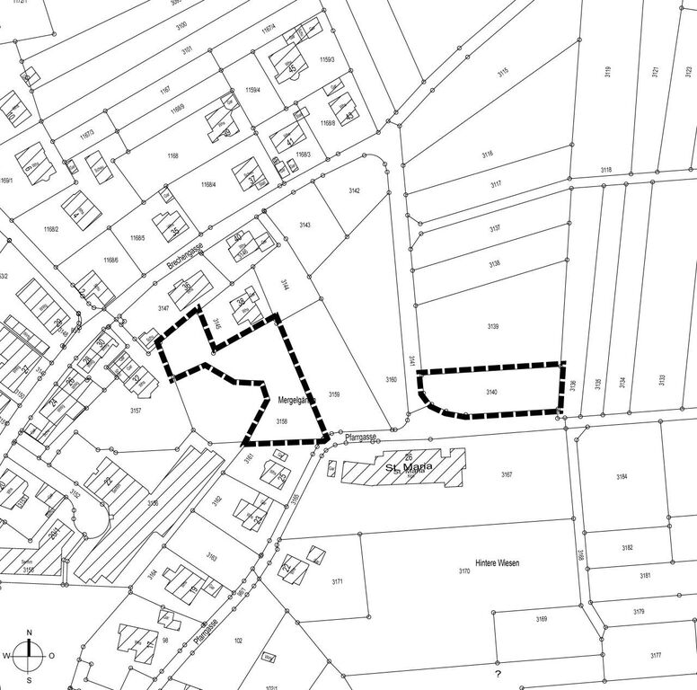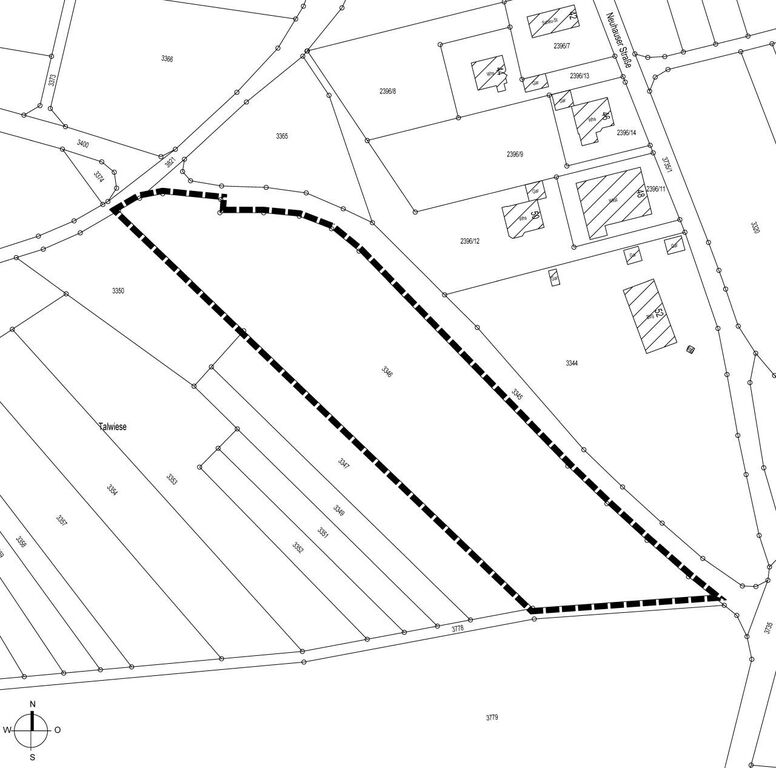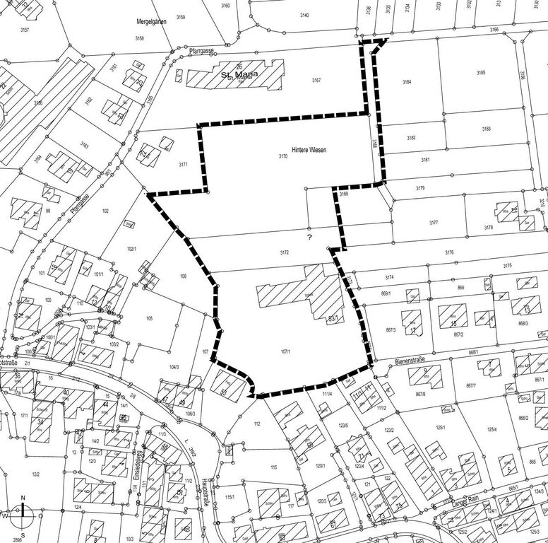 Für den Eingriff durch den Bebauungsplan werden Maßnahmen zum Ausgleich erforderlich. Diese werden wie in der nachfolgenden Planzeichnung dargestellt begrenzt:
